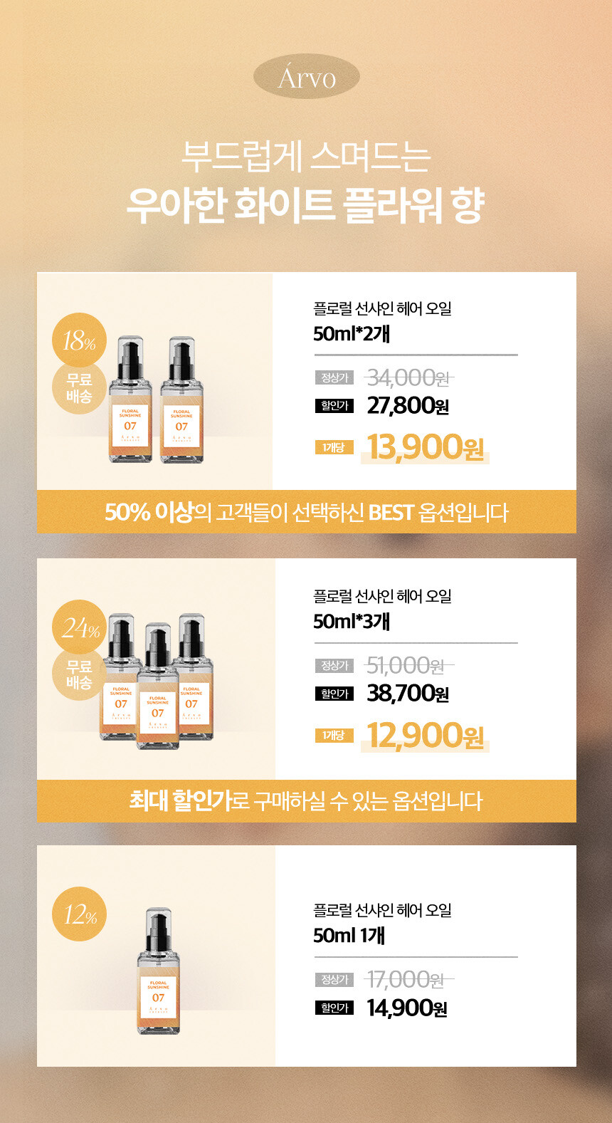 에이르보 07 플로럴 선샤인 헤어 오일 50ml